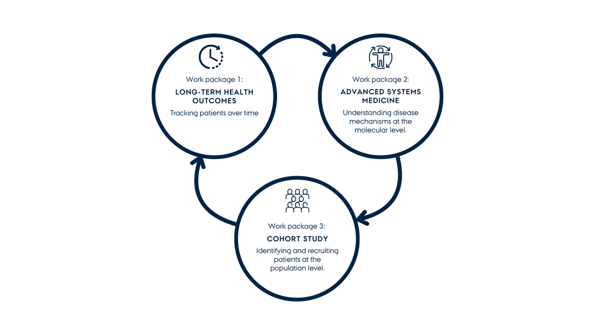 Think of the 3 work packages as parts of a single research ecosystem, each with a different role, but all feeding into each other to create a complete picture of multiorgan inflammatory diseases.